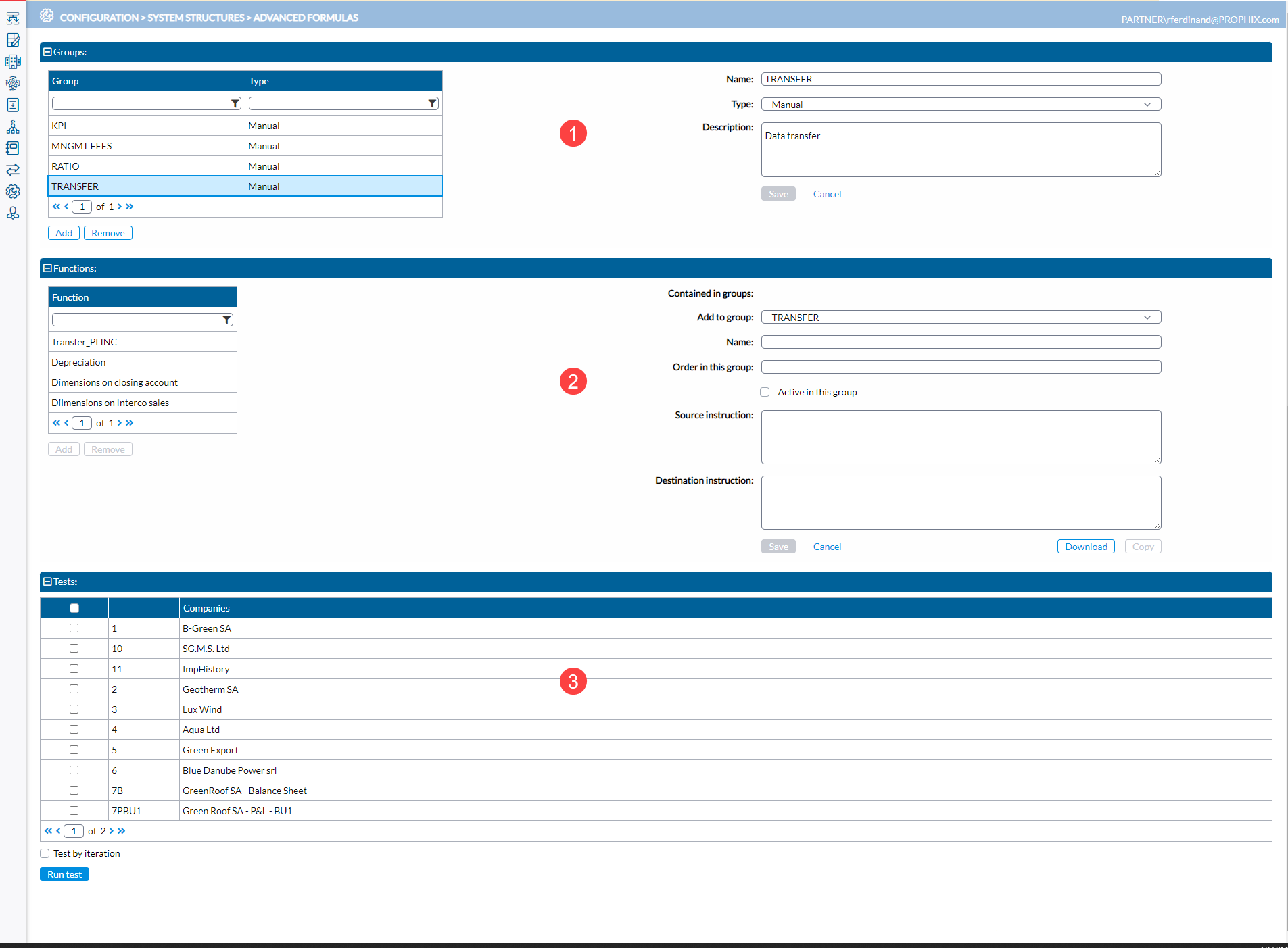 The Functions section allows you to run your formulas for one or more companies and see what the application has