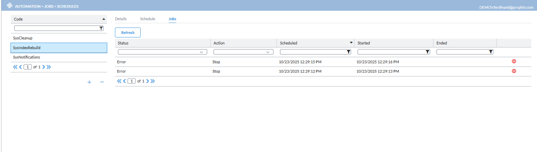 Automation > Jobs > Schedules.