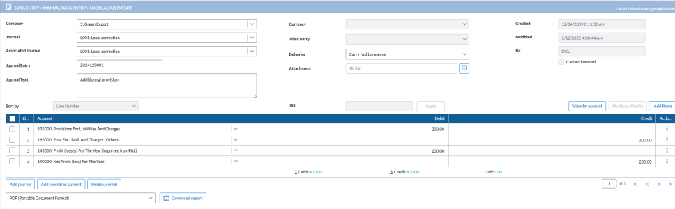 The Multiply / Divide button is very useful during a monthly reporting. You can easily recalculate a provision, depreciation, etc. to the Year-To-Date value.