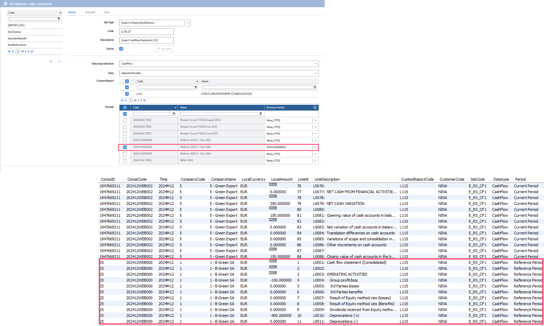 In the Custom Report section, select one or more cashflow-type reports to define the structure of the export.