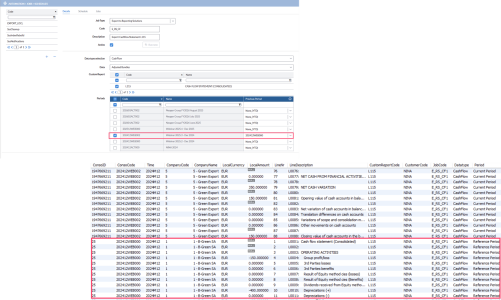 The following shows the selected Previous Period exported as Reference Period in the Period column, with all related amounts reversed
