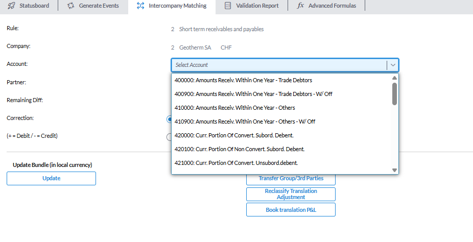 On the Data Entry > Manual Data Entry > Intercompanies page, users have another method to allocate differences to a third party.