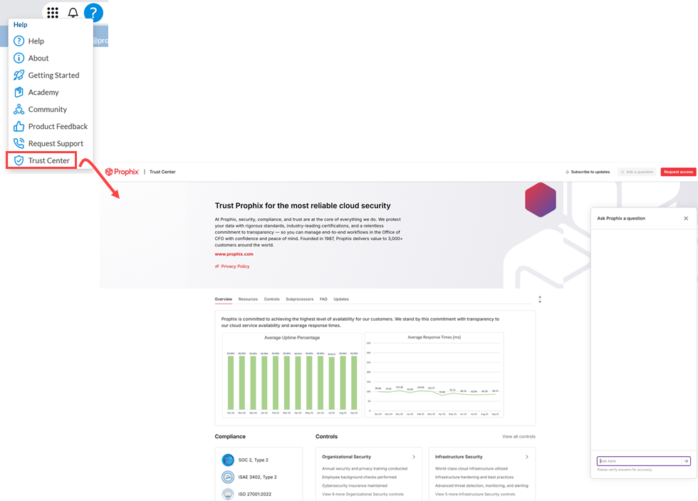 Clients can now access our organization's security, privacy, and compliance information. Click Trust Center in the