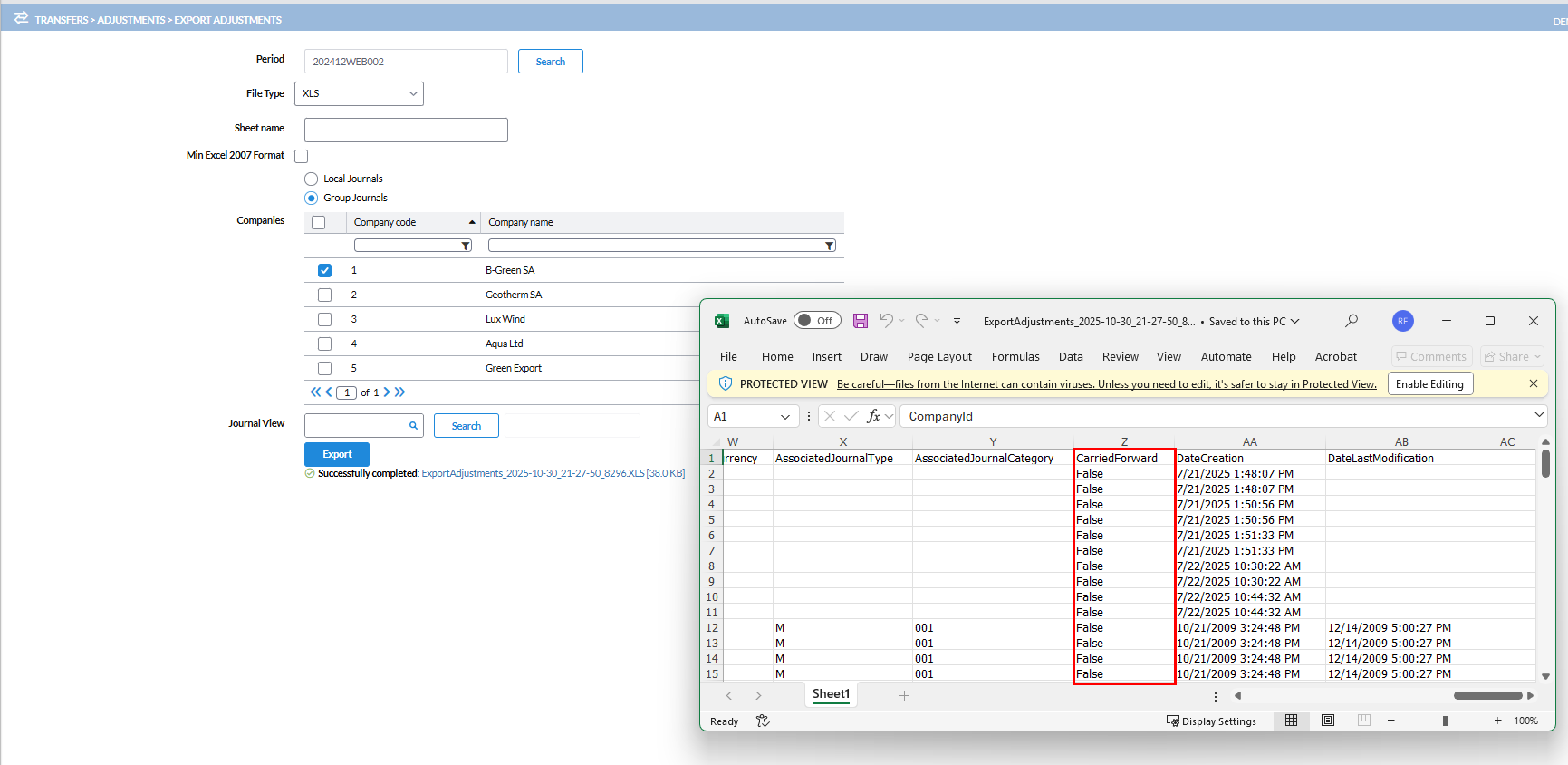 Note: If the system configuration Prevent changes on adjustments carried forward is set to TRUE, users cannot import or edit these journals.