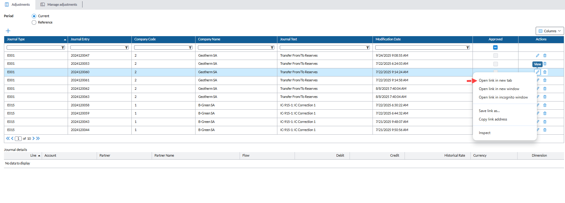 Now, the same validation logic has been extended to Manage Adjustments. If a user attempts to move a journal to another entity using a journal entry that already exists, the system prevents the action.