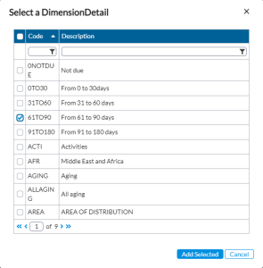 By default the list contains all the dimension codes but you can always filter the list by using the wildcards on the code and description fields.