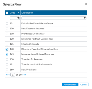 . A Select a Flow pop-up is displayed with the list of flow codes and descriptions. By default the list contains all the flow codes but you can always filter the list by using the wildcards on the code and description fields.
